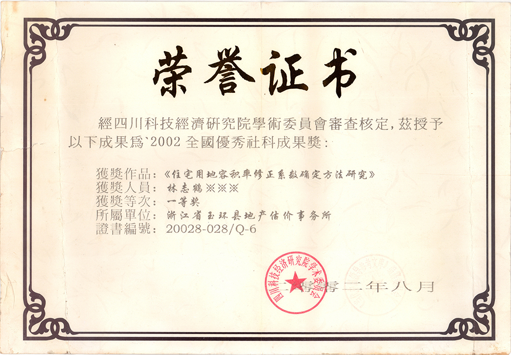 获奖证书