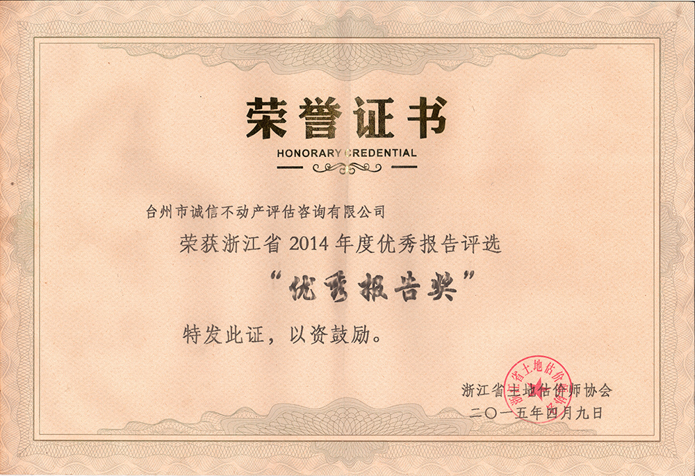 荣誉证书-优秀报告奖